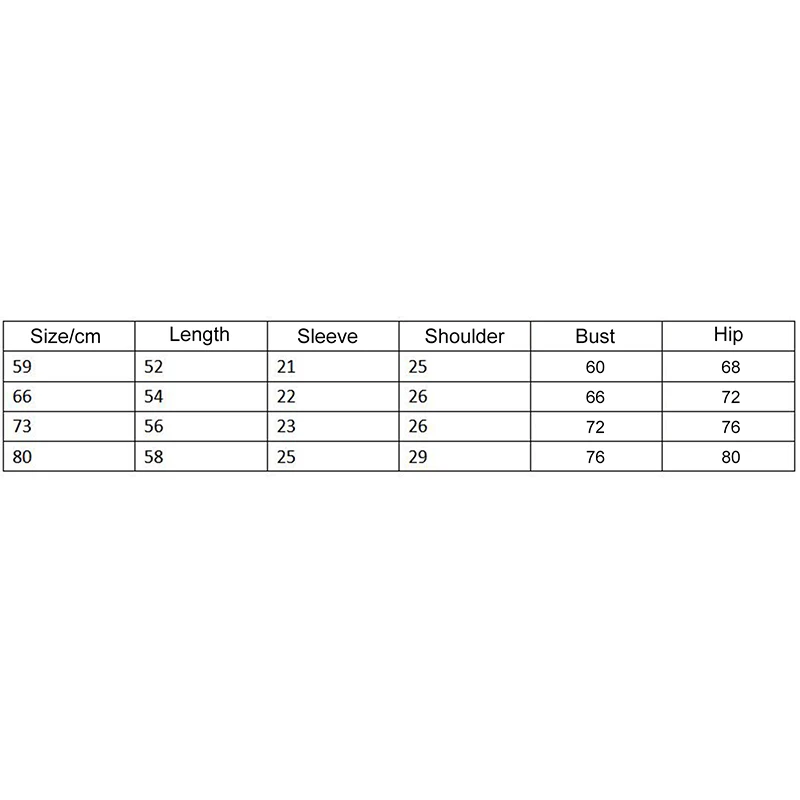 59 Length: 52 Bust: 60 Sleeve: 21 Shoulder: 25 Hip: 68