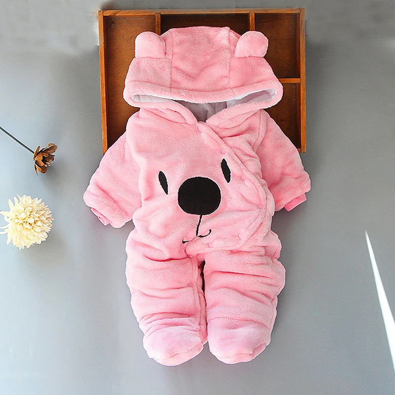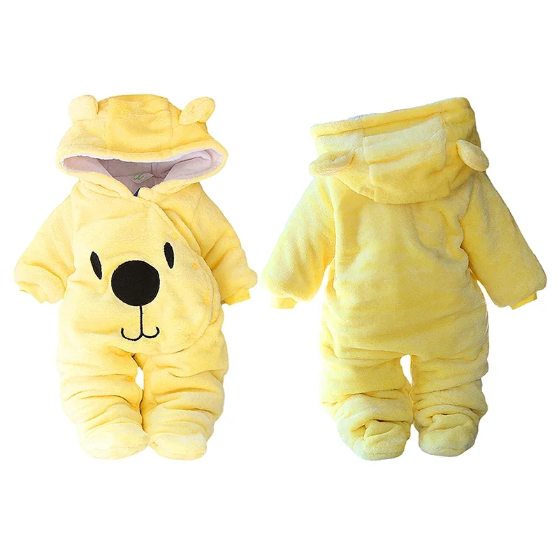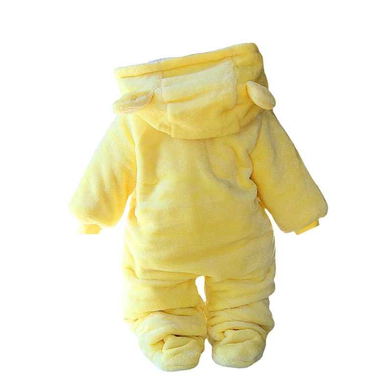 Baby Hooded Footie Romper Snap Up Fleece Snowsuit Winter Outwear Cute Pattern Jumpsuit