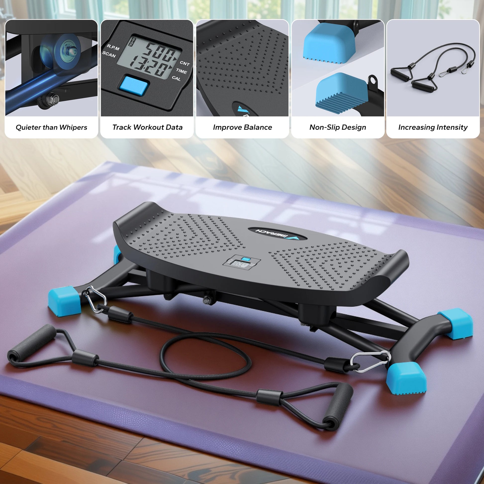 MERACH Slide Stepper for Exercise, Simulate Skiing Posture with 300LBS Capacity, Stepper Exercise Equipment with Resistance Bands for Full Body Workout at Home